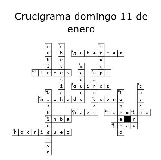Todas las semanas, El Líbero creará para ti un crucigrama basado en los temas relevantes de los últimos días, mencionados en los newsletter Selección Nacional de la semana. Pincha en la imagen para poner a prueba tu conocimiento. Algunos de los temas tratados son: