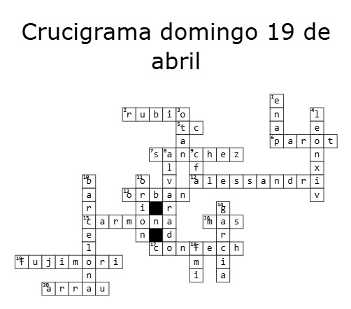Todas las semanas, El Líbero creará para ti un crucigrama basado en los temas relevantes de los últimos días, mencionados en los newsletter Selección Nacional de la semana. Pincha en la imagen para poner a prueba tu conocimiento. Algunos de los temas tratados son: